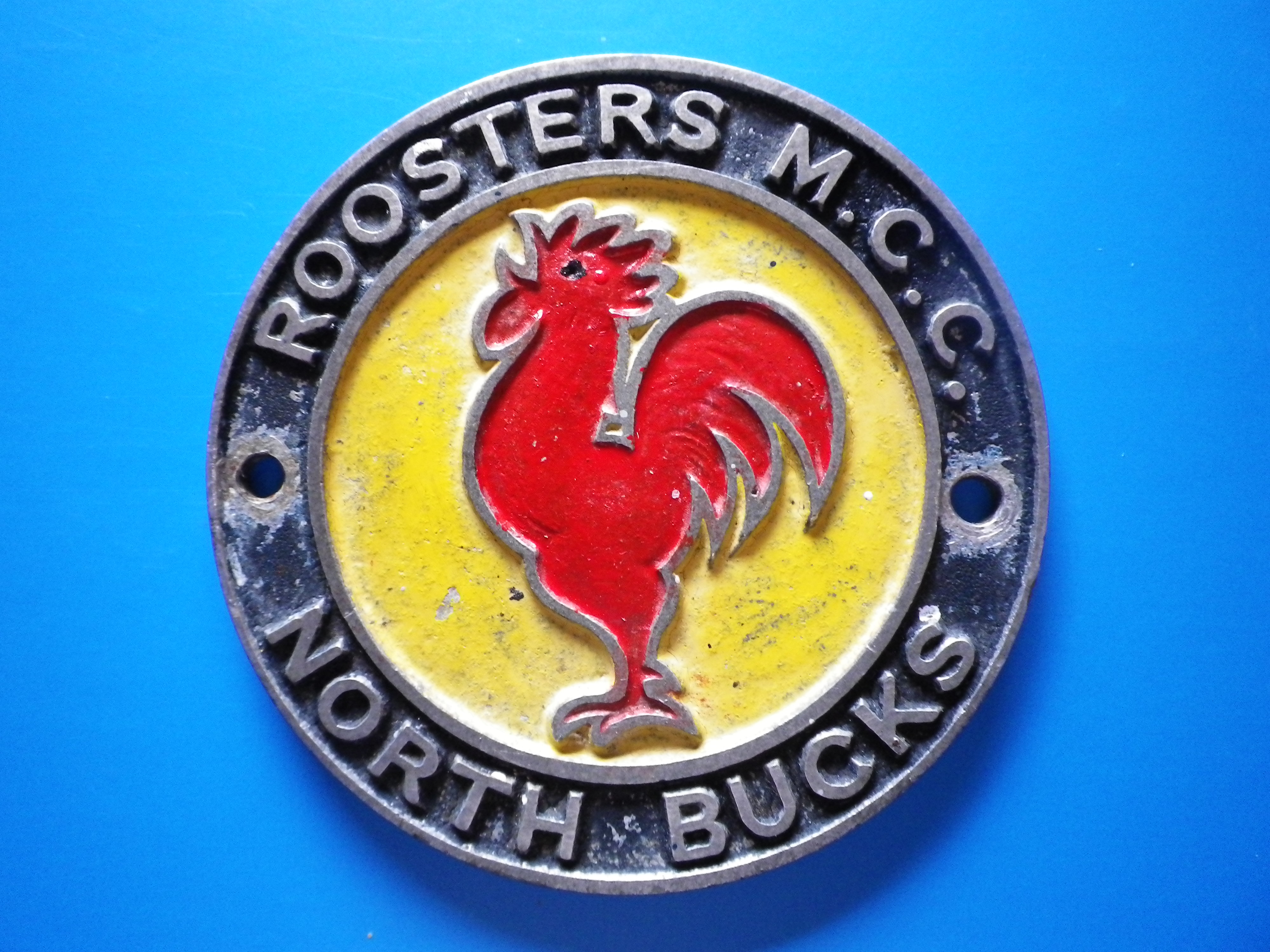 The badge shown above is that of the Roosters North Bucks Motor Cycle Club which operated in North Bucks during the late 1940s and on into the 1950/60s. The badge, 3½ins diam, is photographed by kind permission of Lavendon resident Sylvia Freeman whose late husband was a member of the Roosters MC Club.