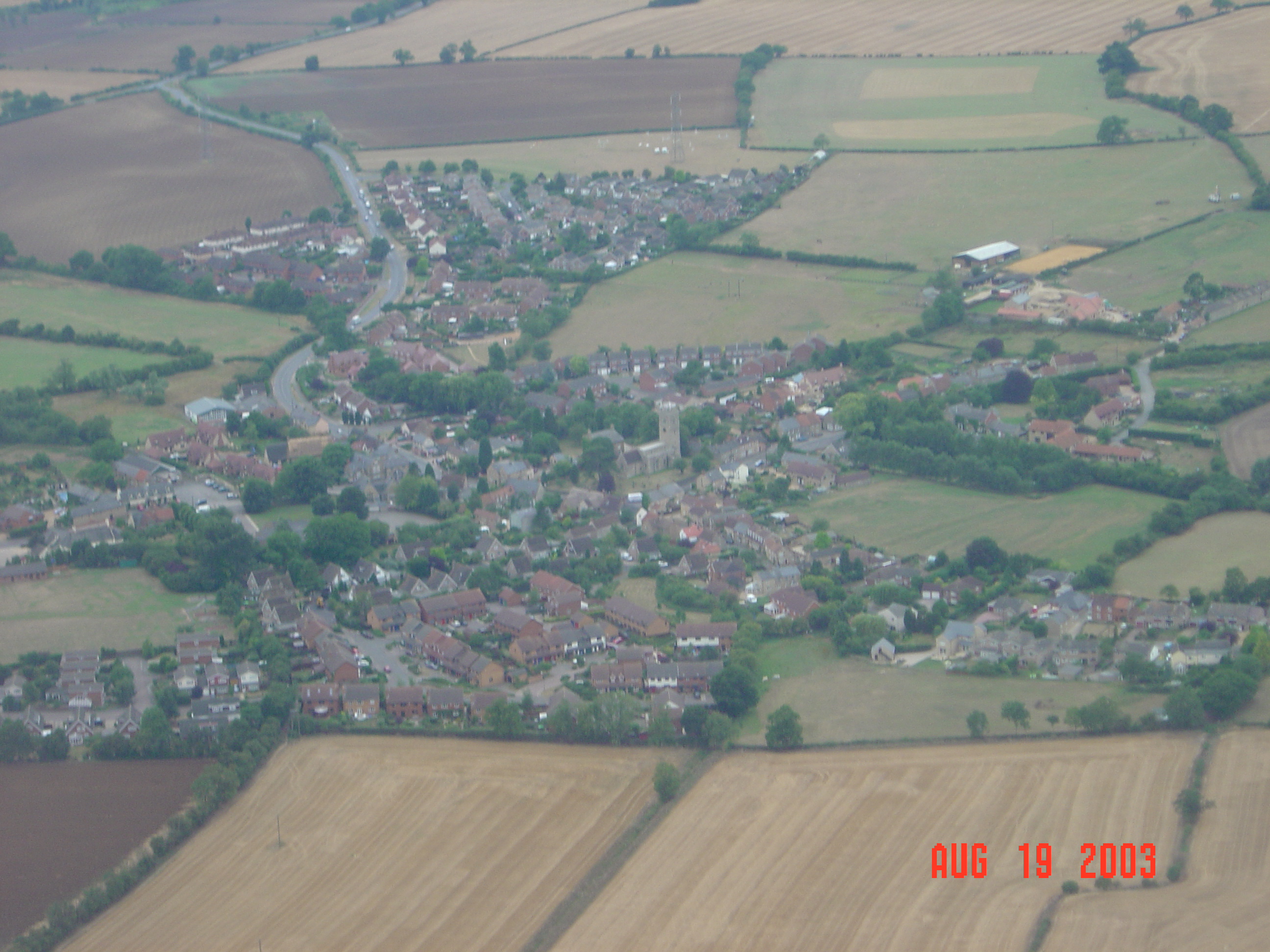 A general view of Lavendon with Olney Road top left and the New Glebe bottom centre.