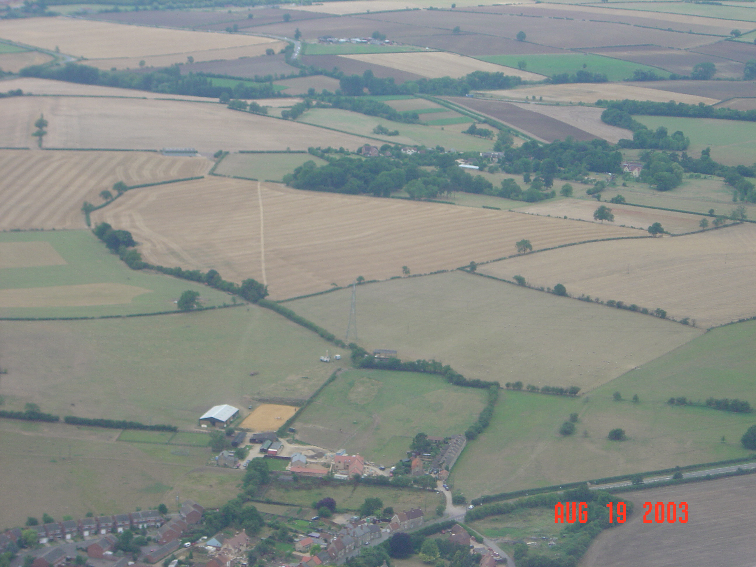DSC00637 The view from the village centre towards the Grange and Abbey Farm hidden amongst the trees, near centre, with Northampton Road bottom right and New Row bottom centre.