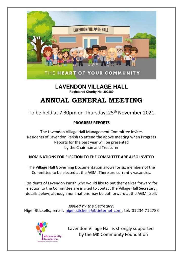 LAVENDON VILLAGE HALL AGM – 25th November 2021