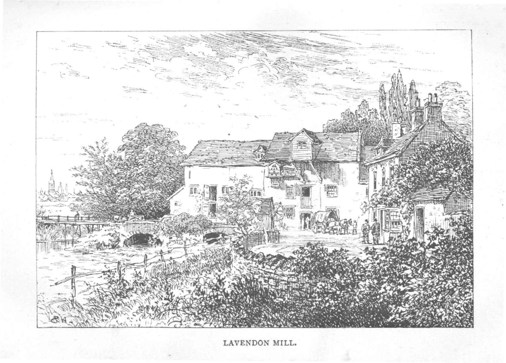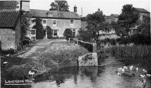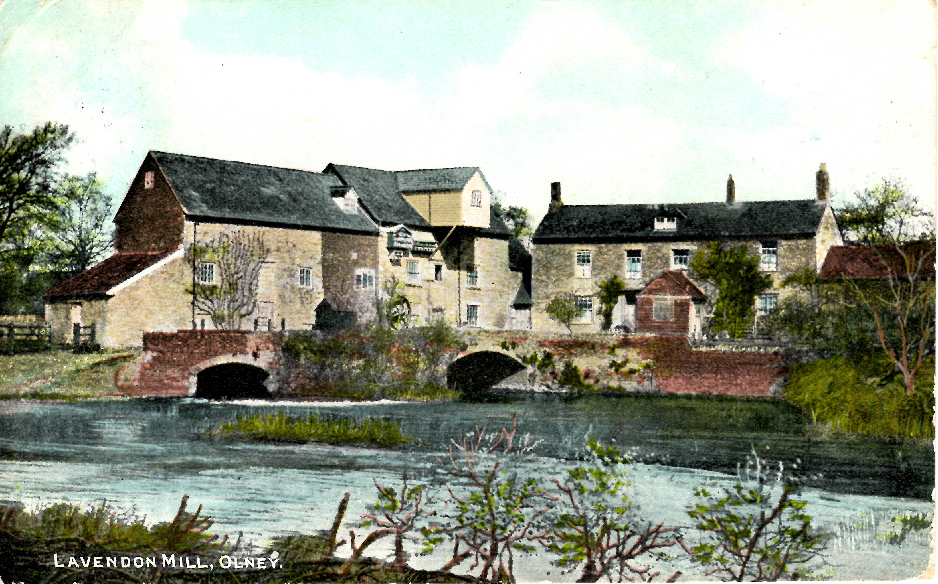 Lavendon Mill has an ancient history, as is clear from the Victoria County History: “… down by the river is Lavendon Mill, probably on the site of that watermill which Humphrey held of the Count of Mortain in 1086. The mill is again mentioned in 1246, and in 1534 was the scene of a quarrel between the Throckmortons of the neighbouring parish of Weston Underwood and Thomas Hill, who had obtained leave from the abbot to wash 400 sheep in the mill dam. At the Dissolution it was described as three mills under one roof and was valued at £4 yearly. This was not, however, the only water-mill in the parish, for there was also a mill ‘and a moiety’ in the chief manor of the Bishop of Coutances in 1086, and this was probably that held at the close of the 13th century by Henry de Norwich of John Pever. In the reign of Edward I a water-mill with a free fishery was appurtenant to the manor of Snelston, and two water-mills are mentioned in an extent of about 1323.”